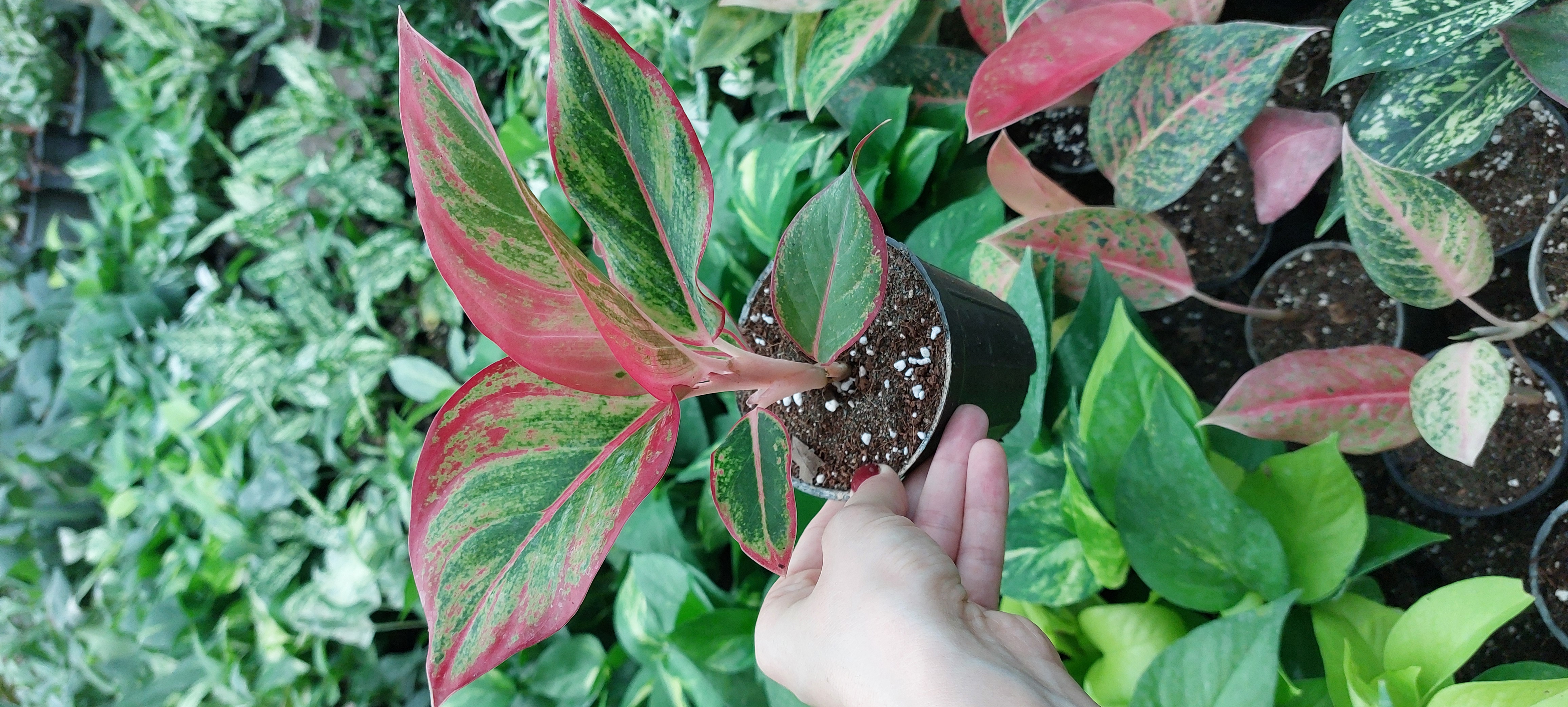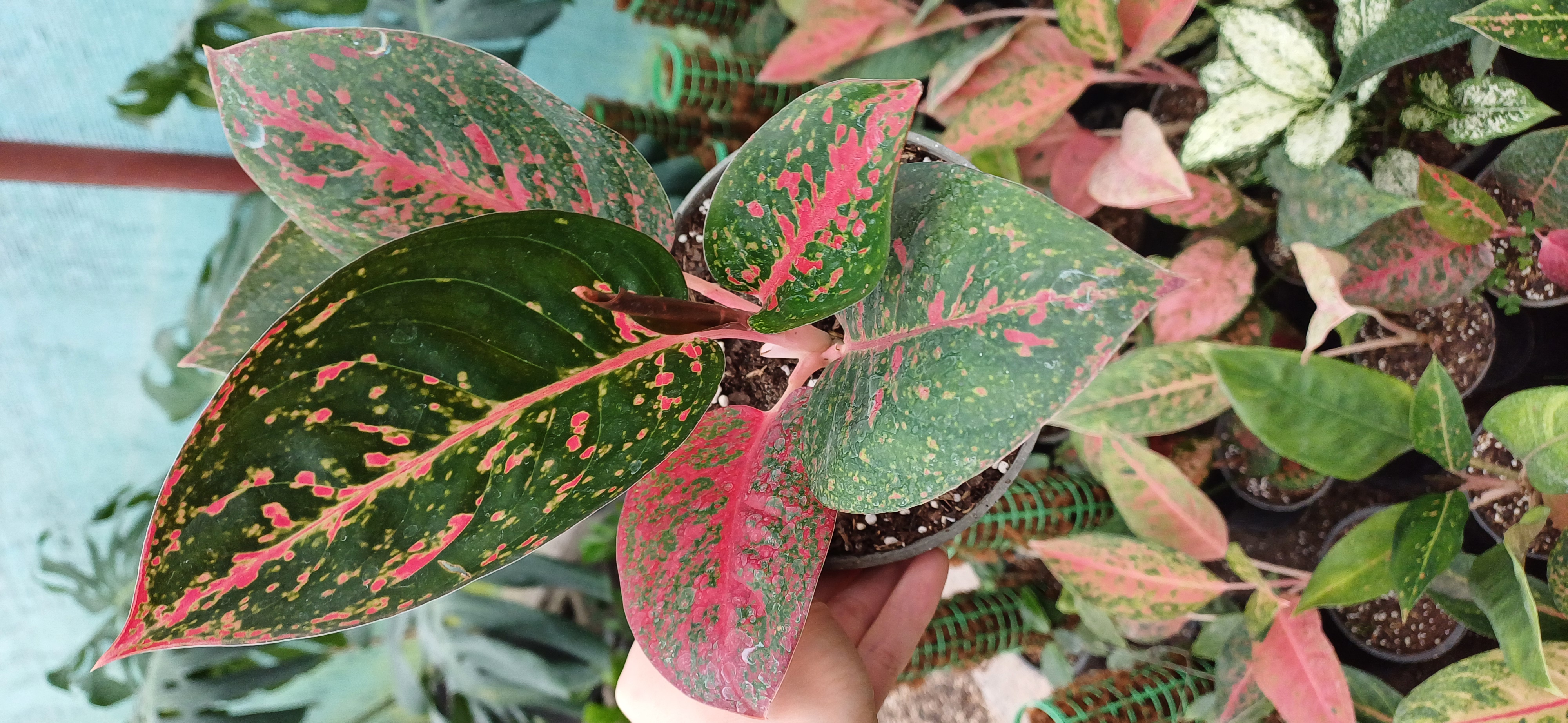 گل آپارتمانی آگلونما لب ماتیکی گلدون۱۰پر